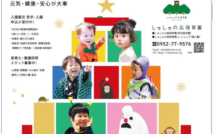 このようななか、2022年3月、佐賀市唐人町において、企業主導型保育園として、新たに「しゅしゅの森保育園Jr.ジュニア(唐人分園)」を新規開園し、多布施本園と連携して一体的に運営することとしました。
